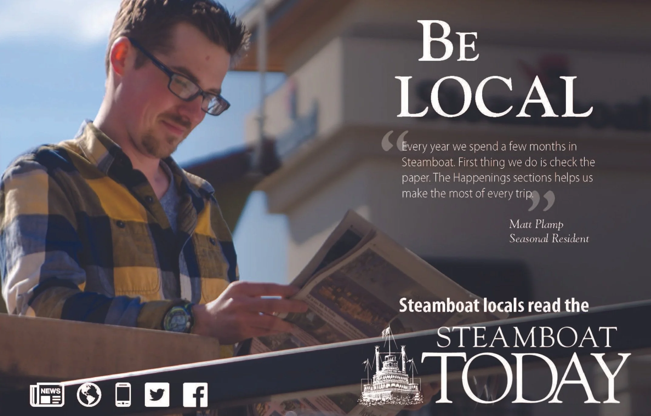 The Steamboat Pilot & Today had been around almost as long as the town itself. What better way to keep up with local affairs? That was the idea behind this campaign: to associate the idea of reading the local paper with being a local, whether you live in Steamboat or not.